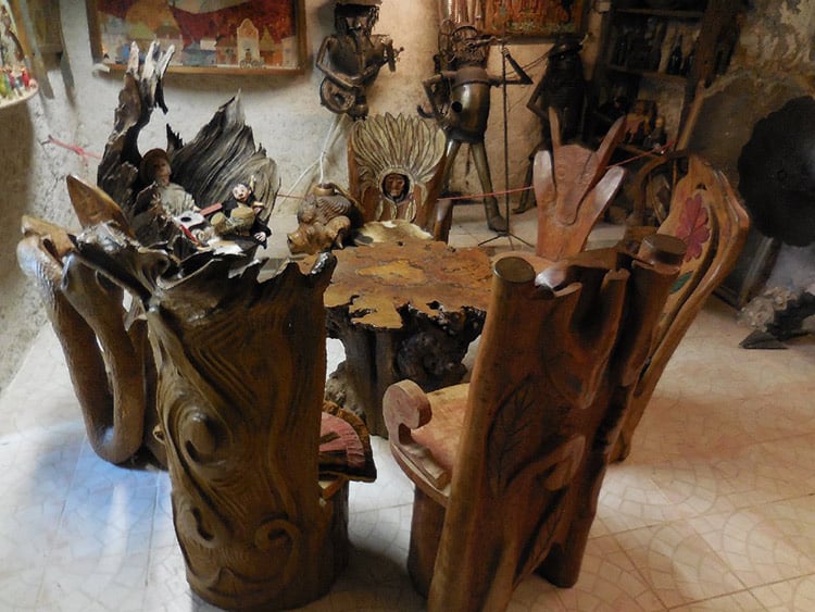 Il a organisé ici un musée étonnant de tout ce qui est inhabituel. La moitié en plein air, l’autre moitié – dans sa maison, qui est perchée contre des grottes où autrefois vivaient des troglodytes, et maintenant – seulement lui et encore une colonie de corbeaux bruyants.