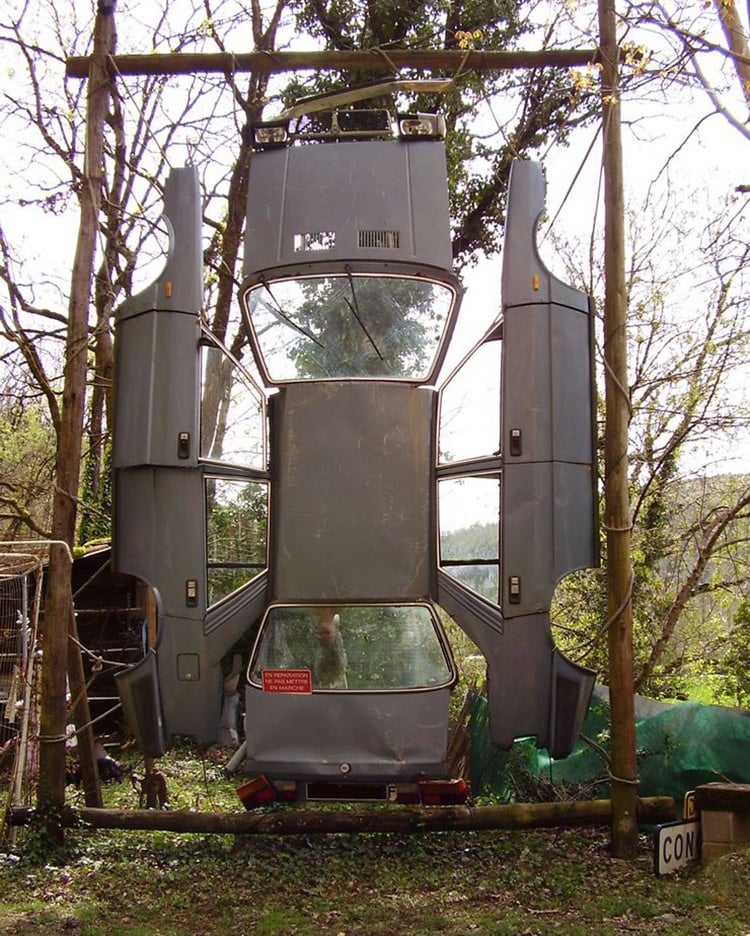 En plus – il a tout fait de ses propres mains – des spectaculaires voitures « crucifiées », à des sculptures tout à fait normales (si vous ne les observez pas de très près) faites d’outils agricoles et un parc « zoo illogique», « peuplé » de coqs, de vaches et de fourmis. Toutes ses créations personnelles, comme celles réalisées par Cesar Baldachini, sont faites à partir de matériaux trouvés par un coup de chance, et chez des marchands de ferraille.