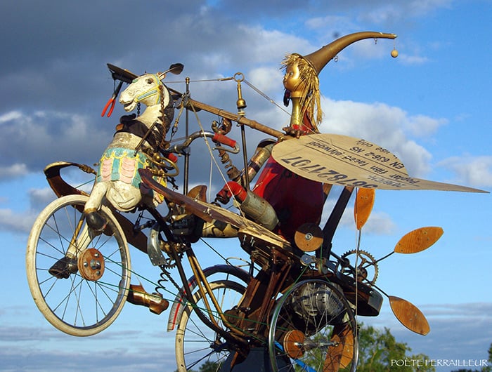 Depuis plus de 25 ans déjà Robert crée à partir de la ferraille et autres moyens de fortune un univers peuplé de Chasseurs d’étoiles, Courageuses Amazones, Soldats de plomb et comme centre d’exposition – le Capitaine des Oiseaux à bord de son avion avec le Petit Prince.