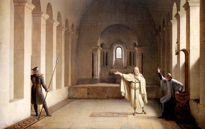 Архивные свидетельства показывают, что уже находясь в заключении и под пытками, Жак де Моле призвал к себе Гишара де Божё, племянника предыдущего главы Ордена, и предложил ему стать следующим Великим Магистром. С небольшим условием. Молодому человеку предстояло испытание: разыскать реликвию – палец Иоанна Крестителя, хранящийся в серебряной шкатулке в крипте Магистров в парижском Тампле. Гишар с заданием справился успешно, и Жак де Моле отправил ему записку. Что удивительно – почти не зашифрованную. В которой сообщал, что если хорошо поискать в той же крипте, то в склепе Гиойма де Божё на самом деле лежат не останки дяди Гишара, а весь архив Тамплиеров, плюс кое-какие сокровища, которые не удалось вовремя вывезти из города: корона Иерусалимских королей, семисвечник-менора из храма Соломона и четыре золотые статуэтки Евангелистов из храма Гроба Господня. А дядю, на самом деле, закопали там же, где он пал, сражаясь – в Акре. Так что не бойся, на мертвеца смотреть не придется.