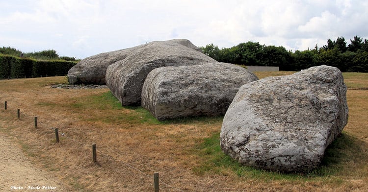 Еще один колоссальный со всех сторон тумулус – находящийся в Локмариакере курган Эр-Грах, датируемый 4000 годом до н.э. Его длина более 200 метров. Была. Потому что он почти по самую крышу ушел в «культурный слой», а то, что осталось на поверхности, растащили на окрестные жители на строительство собственных домов еще в раннем Средневековье. Никакого уважения к покойным!