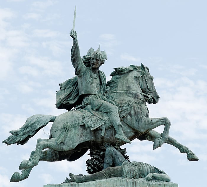 Рассказываем. Воин с почти непроизносимым именем – легендарный вождь кельтского племени арвернов, не наложивший в штаны перед Юлием Цезарем. Противников рубил без страха и упрека. Особенно отличился в битве при Герговии, неподалеку от Клермона, который тогда вообще назывался Немессосом. А имя свое сменил на римское Clarus Mons уже после того, как Верцингеторикса вздернули по приказу Цезаря на воротах Рима.