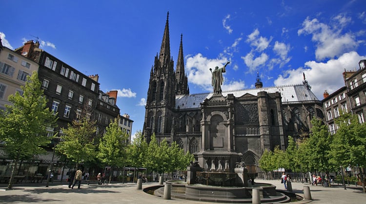 А заодно увидеть уникальный «черный» собор, аналогов которому во Франции уж точно нет. Клермон-Ферран, город, на центральной площади которого Папа Римский Урбан II призвал в 1095 году местных рыцарей отправиться защищать Святую Землю, а заодно отбить у мусульман Гроб Господень. Город, кстати, почти весь черный, но совсем нестрашный. Просто дома здесь традиционно строили из местной вулканической породы насыщенно темного, почти черного, цвета.