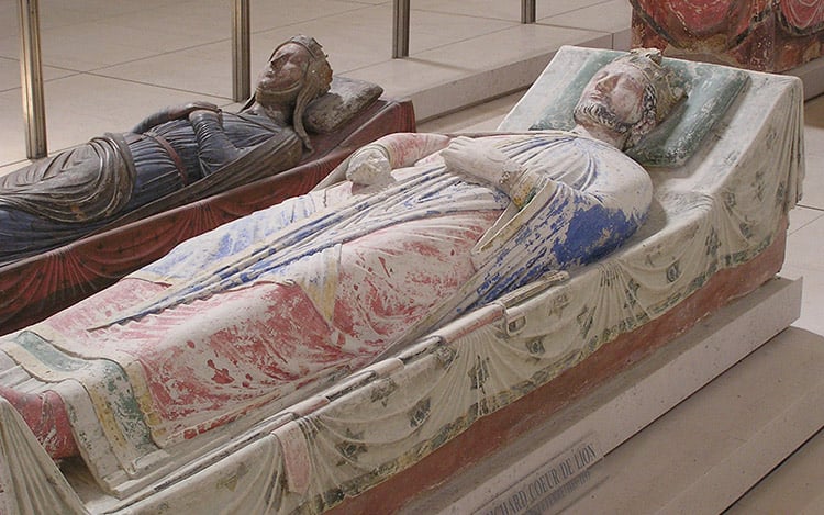 Историки склонны считать, что, хотя король Ричард Львиное Сердце и был английским королем (благодаря маме – Алиеноре Аквитанской, которая развелась с Людовиком VII и вышла замуж за Генриха Плантагенета), в Англии бывал буквально два с половиной раза в своей жизни. Он все больше находился во Франции (ну, хотя бы потому, что вместе с Алиенорой Англии досталась и Аквитания), в военных кампаниях и в Крестовых походах в далекую Святую землю. Поэтому и похоронен он здесь же, во Франции. Внутренности в Шалю, в Лимузене, где он был ранен и скончался, а тело нашло свой последний покой в аббатстве Фонтевро. Много лет спустя в этом же аббатстве похоронили возле любимого сына и саму Алиенору.