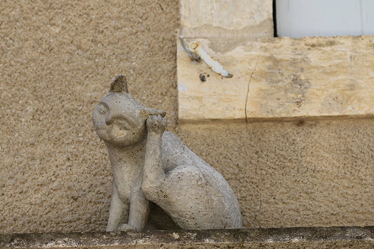 Потом он сделал еще одну кошку, и еще одну. И уже не мог остановиться. Он сделал котика для мясника и булочника, для аптекаря и парикмахера, а заказы все поступали и поступали. В итоге, городок в 500 жителей буквально наводнили скульптуры котиков.