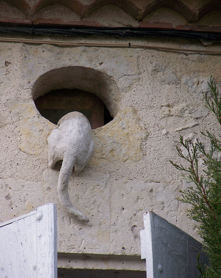 Много столетий спустя, скульптор из Орлеана, Морис Серро, навещая свою бабушку в Гаскони, слушал эту легенду и однажды решил, что история об Анжелине не должна исчезнуть. Где-то в 1990-х он сделал первую кошку и водрузил ее на стену бабушкиного дома, в который перебрался из «большого города».
