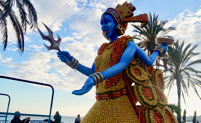 Каждый год фестиваль посвящают новой теме. В 2018 году публику пригласили в апельсиново-лимонный Болливуд – отсюда фигуры смуглых танцовщиц, слонов, тигров и многоруких индуистских божеств на платформах, движущихся парадом через город.