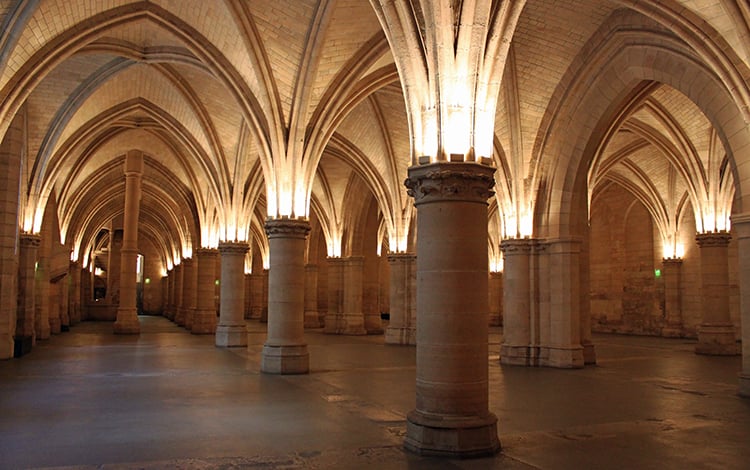 Под Большим залом находился зал Караульный или зал Жандармов. Нет, к современным жандармам он не имеет отношения, просто Salle des Gens d’Armes – зал армейского люда. Кстати, его можно посетить и сегодня в Консьержери. На одной из стен вы даже можете лицезреть (а можете и потрогать) кусок того самого легендарного черного мраморного стола…